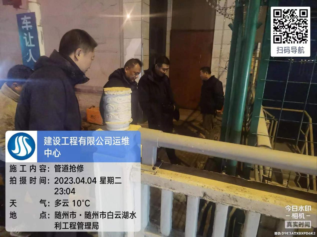 44日,水務(wù)集團(tuán)一條熱線工單,反映位于白云湖大壩舜井大橋路段處一根DN700的主供水網(wǎng)破裂需盡快修復(fù)。盡管已是夜間,水務(wù)集團(tuán)維修人員仍火速趕至現(xiàn)場(chǎng),當(dāng)即確定漏水管線影響范圍,及時(shí)關(guān)閉閥門(mén)并向受影響小區(qū)發(fā)布停水通知
