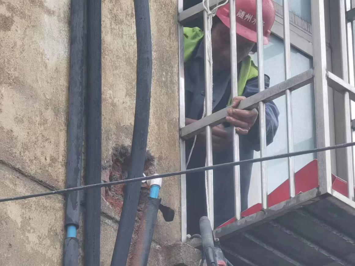 “這里水管漏了,外面的墻都打濕了,麻煩你們快來(lái)看看啊!”3月20日上午8點(diǎn)30分,建設(shè)工程公司接到市民的求助電話,稱(chēng)他家墻外有根水管在向外冒水。運(yùn)維中心牽頭人張遠(yuǎn)燈立即安排維修人員第一時(shí)間趕往現(xiàn)場(chǎng)。經(jīng)過(guò)詢問(wèn)和現(xiàn)場(chǎng)查看后,發(fā)現(xiàn)事故原因是2樓外墻進(jìn)屋處彎頭漏水,但該項(xiàng)維修內(nèi)容本不屬于公司的維修范疇。維修人員看到無(wú)助的老人,便毫不猶豫地爬上2樓陽(yáng)臺(tái),在狹窄的空間內(nèi)艱難地為老人更換破損管件。雖然是用戶房屋內(nèi)部管道漏水,水務(wù)人本著想用戶所想,急用戶所急的服務(wù)精神,不計(jì)較、不推諉的幫助用戶及時(shí)解決漏水難題。