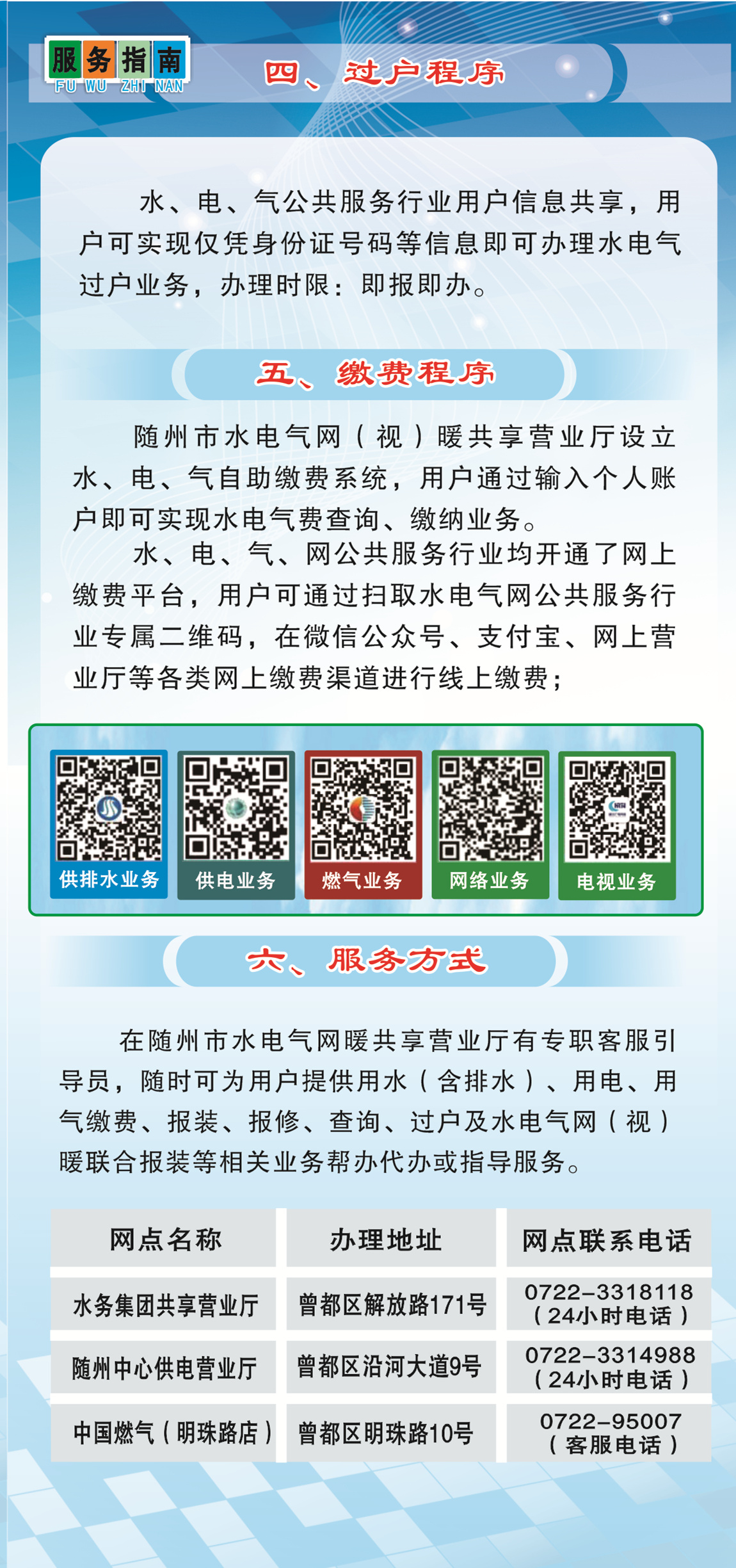 《隨州市水電氣網(wǎng)暖共享營業(yè)廳辦事服務(wù)指南》