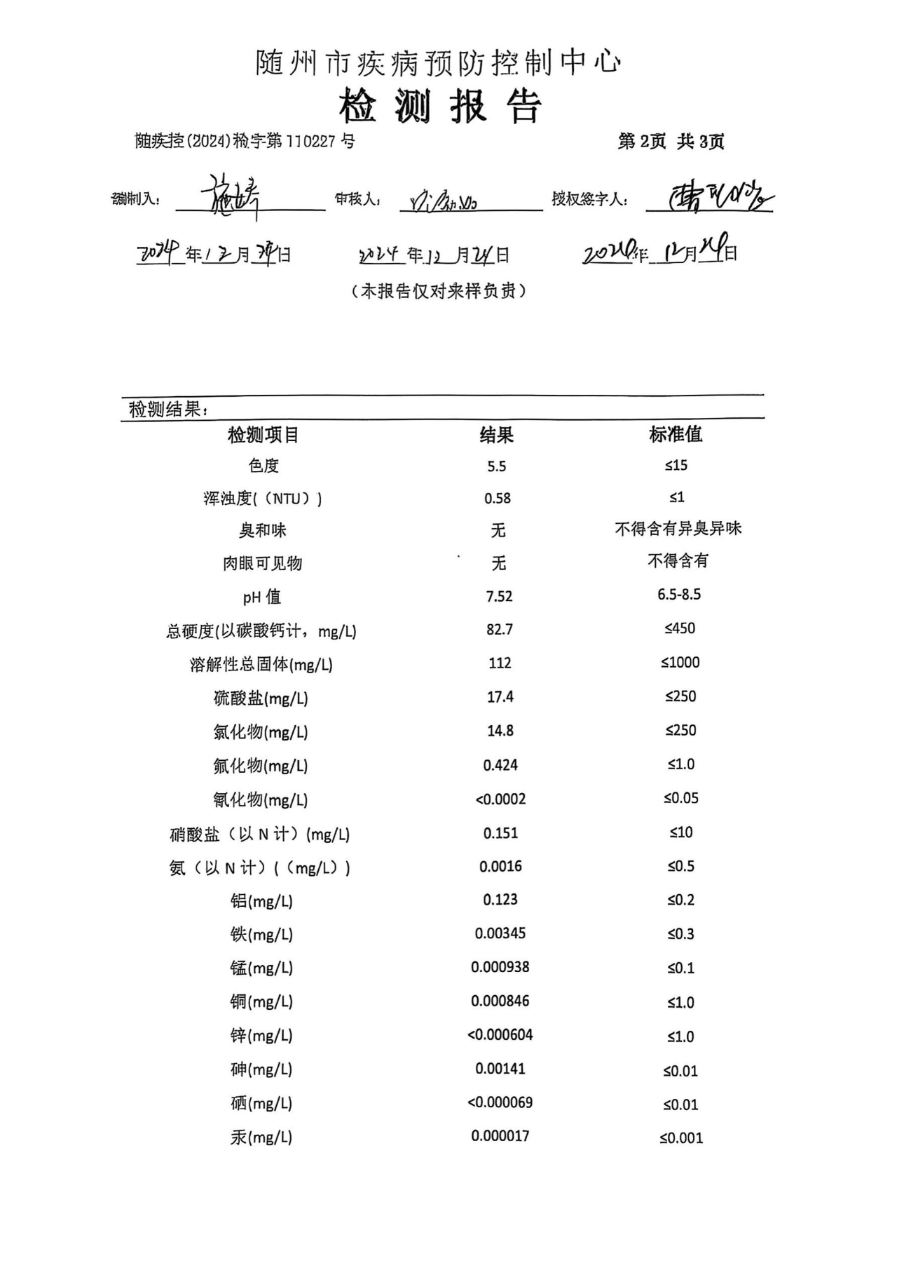 二、我公司在水質(zhì)管理上嚴(yán)格執(zhí)行兩級(jí)管理、三級(jí)檢測(cè)制度,出廠水水質(zhì)均符合國家《生活飲用水衛(wèi)生標(biāo)準(zhǔn)》GB5749-2022的要求,請(qǐng)廣大用戶放心使用。
