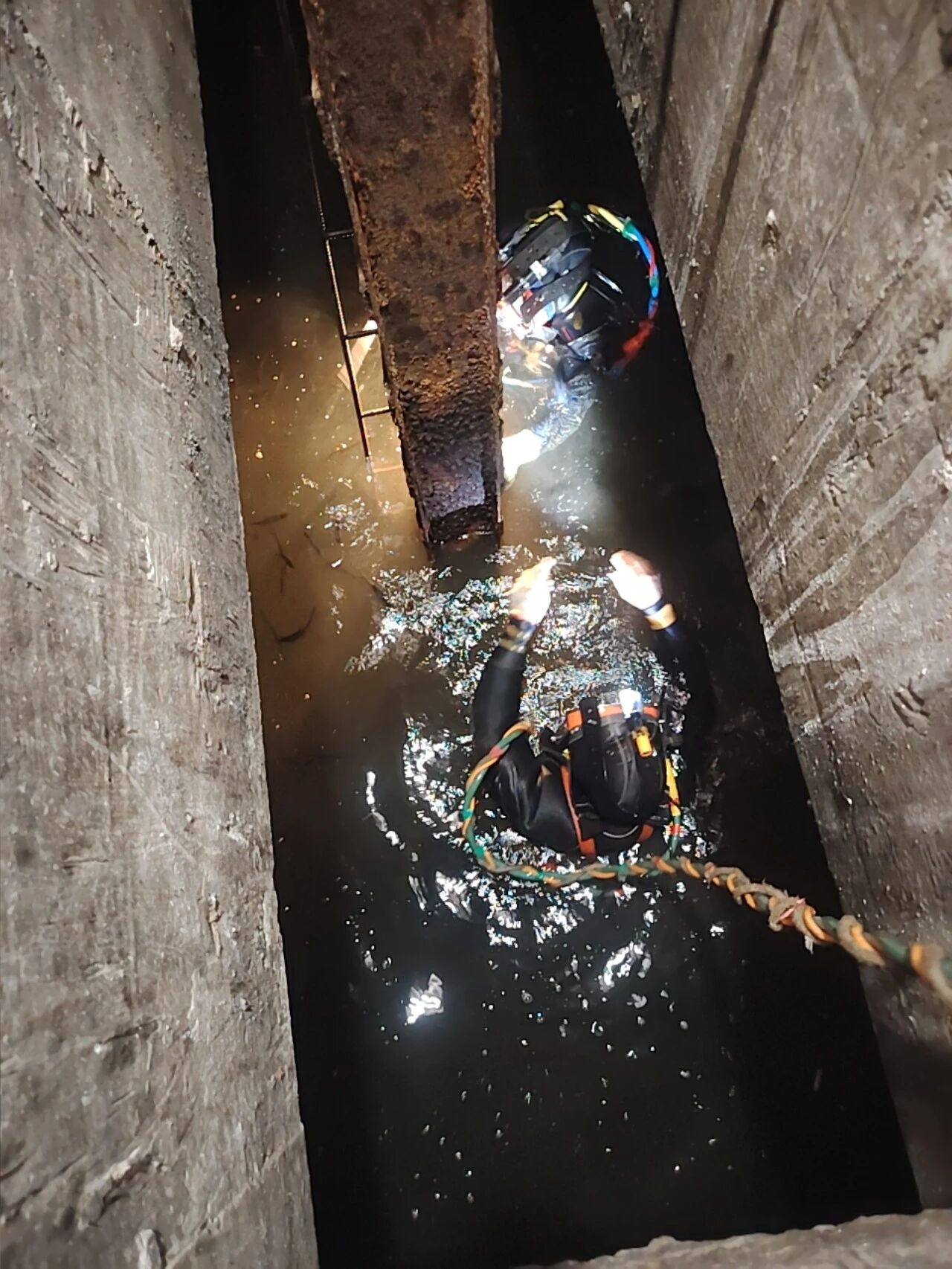 3月24日清晨,隱患檢修作業(yè)正式啟動(dòng)。封江水廠提前儲(chǔ)備應(yīng)急水源,全程保障供水不間斷;集團(tuán)及公司領(lǐng)導(dǎo)現(xiàn)場(chǎng)指揮,嚴(yán)格把控安全與施工質(zhì)量。專(zhuān)業(yè)潛水人員在復(fù)雜水下環(huán)境中精準(zhǔn)操作,安全員全程實(shí)時(shí)監(jiān)護(hù),技術(shù)人員同步記錄施工全過(guò)程,以零誤差、零失誤標(biāo)準(zhǔn)推進(jìn)每一道工序。